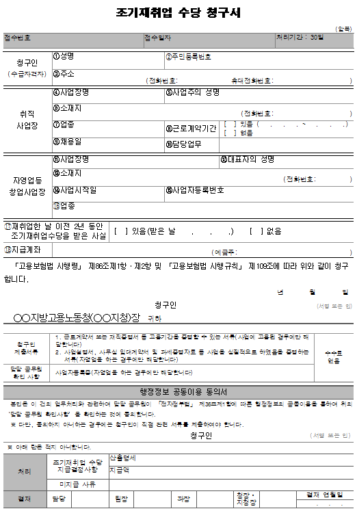 조기재취업수당을 신청하려면 가까운 고용지원센터를 방문하여 신청서를 제출해야 합니다. 이때 필요한 서류로는 신분증, 고용보험 가입 내역서, 재취업 증명서 등이 있습니다.
