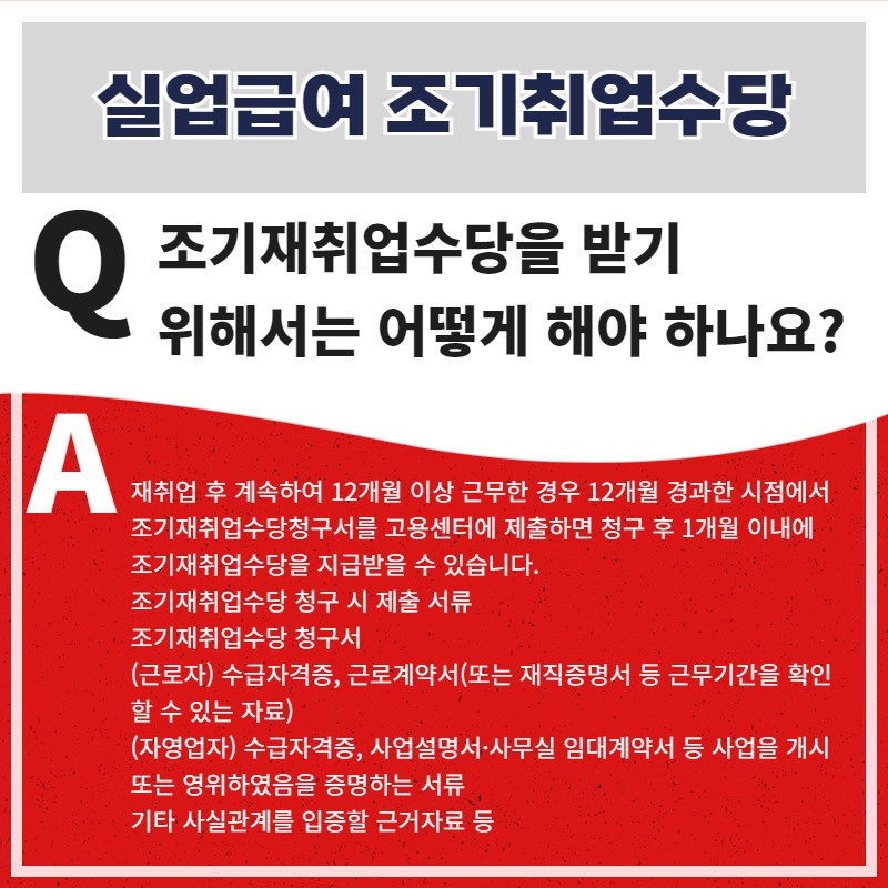 조기재취업수당, 실업급여, 고용보험, 재취업 조건, 고용지원센터, 비자발적인 실직, 재취업 증명서, 조기재취업수당 신청, 재취업 혜택, 구직 활동, 실업급여 수급 기간, 온라인 신청, 재취업 지원 프로그램, 경제적 안정