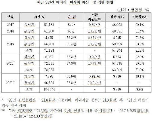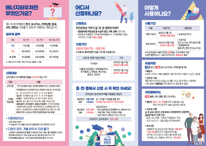 - 등유 및 연탄: 등유 또는 연탄을 사용하는 가구 지원