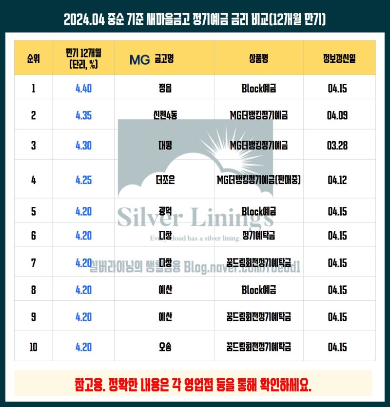 새마을금고는 전국적으로 정말 많은 지점이 있죠. 각 지점마다 금리가 같지는 않겠죠. 최적의 금리를 찾으려면 비교를 해봐야 하겠죠.