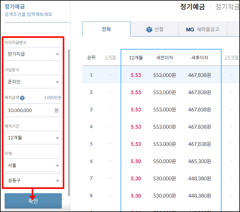 새마을금고 공식 홈페이지에는 각 지점별로 제공하는 예금 상품과 상품별 상세한 금리 조회 서비스를 매우 손쉽게 이용할 수 있습니다.