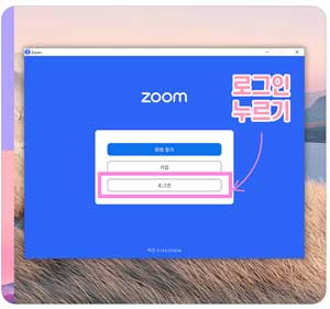 - Zoom이 실행되면, "로그인" 또는 "가입" 버튼을 클릭합니다.